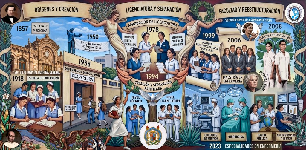 1857: La formación en Enfermería en Michoacán inicialmente se enfocaba en la preparación de personal para ejercer la obstetricia, como una dependencia de la Escuela de Medicina y cuyo único requisito de ingreso era el certificado de primaria.